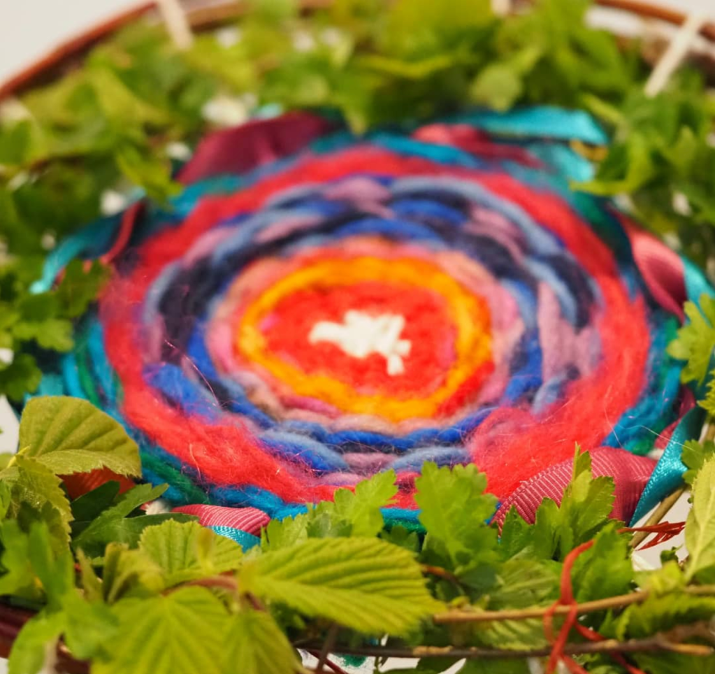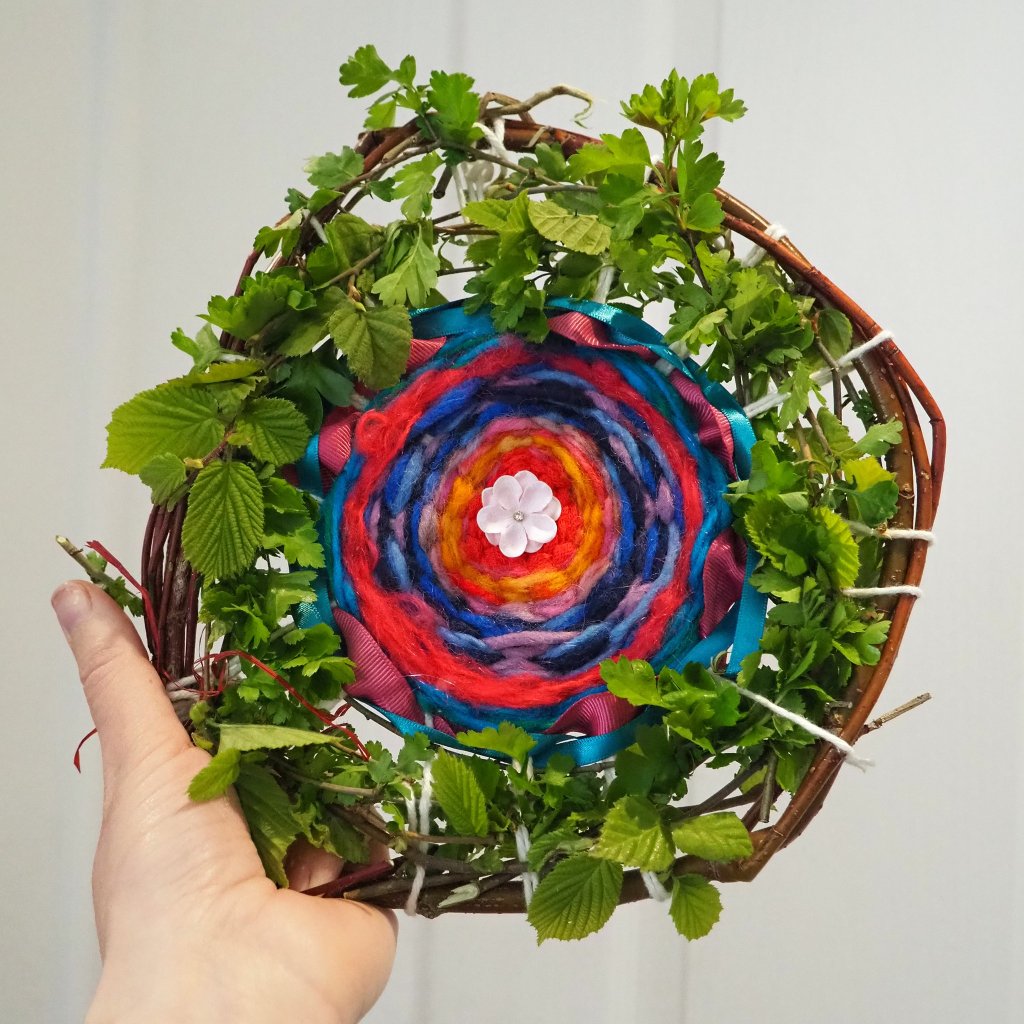 I crafted this rather sweet albeit rustic loom from willow wood and yarn, finished off with hawthorn leaves for the hawthorn represents the heart spiritually and medicinally. As I wove, I envisaged weaving my wishes and hopes for myself and for the world into the tapestry of my dreams. I had the fortune to attend a beautiful Beltane gathering in an enchanted bluebell glade held by Maria Sophia Rose at Heart2Art here in Sussex UK. Here this weave was born along side some heavenly singing, dancing, drumming and prayer casting. I highly recommend Maria’s creative ceremonial circles, do check her out.