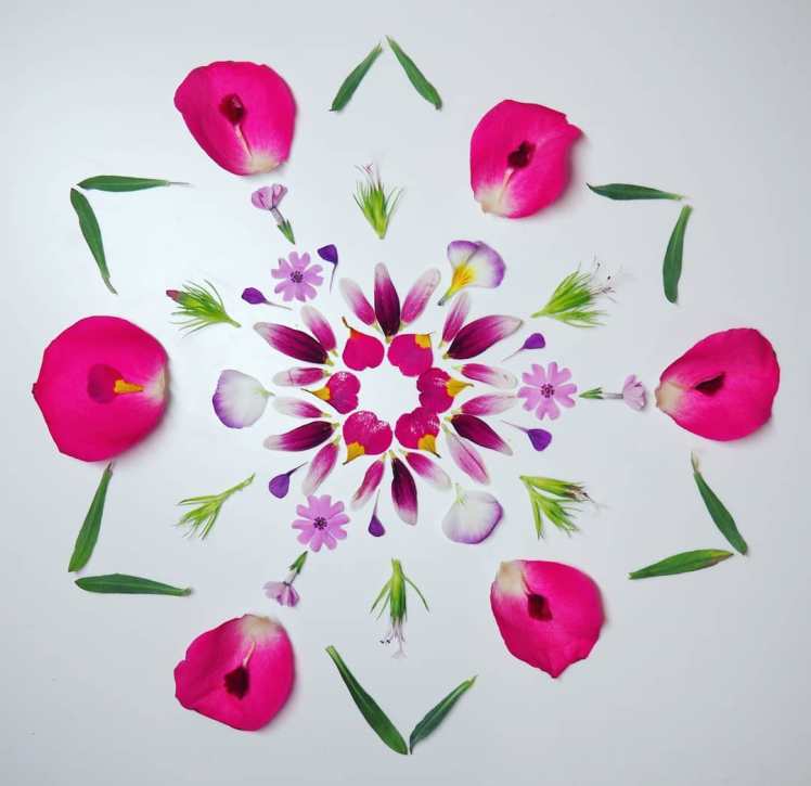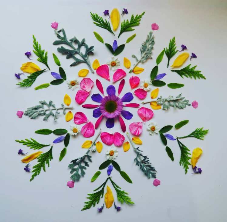 I create art from nature with the intention of highlighting and celebrating the beauty of our earth, so easily overlooked and taken for granted. Creating beauty in a broken world, particularly with so much external chaos going on, seems to have a soothing and centring effect upon my soul. It’s like an innate recognition of the inherent order underlying all of creation, plus I find a comforting sense of predictability in creating symmetry in a mandala. For me it truly is the best medicine.